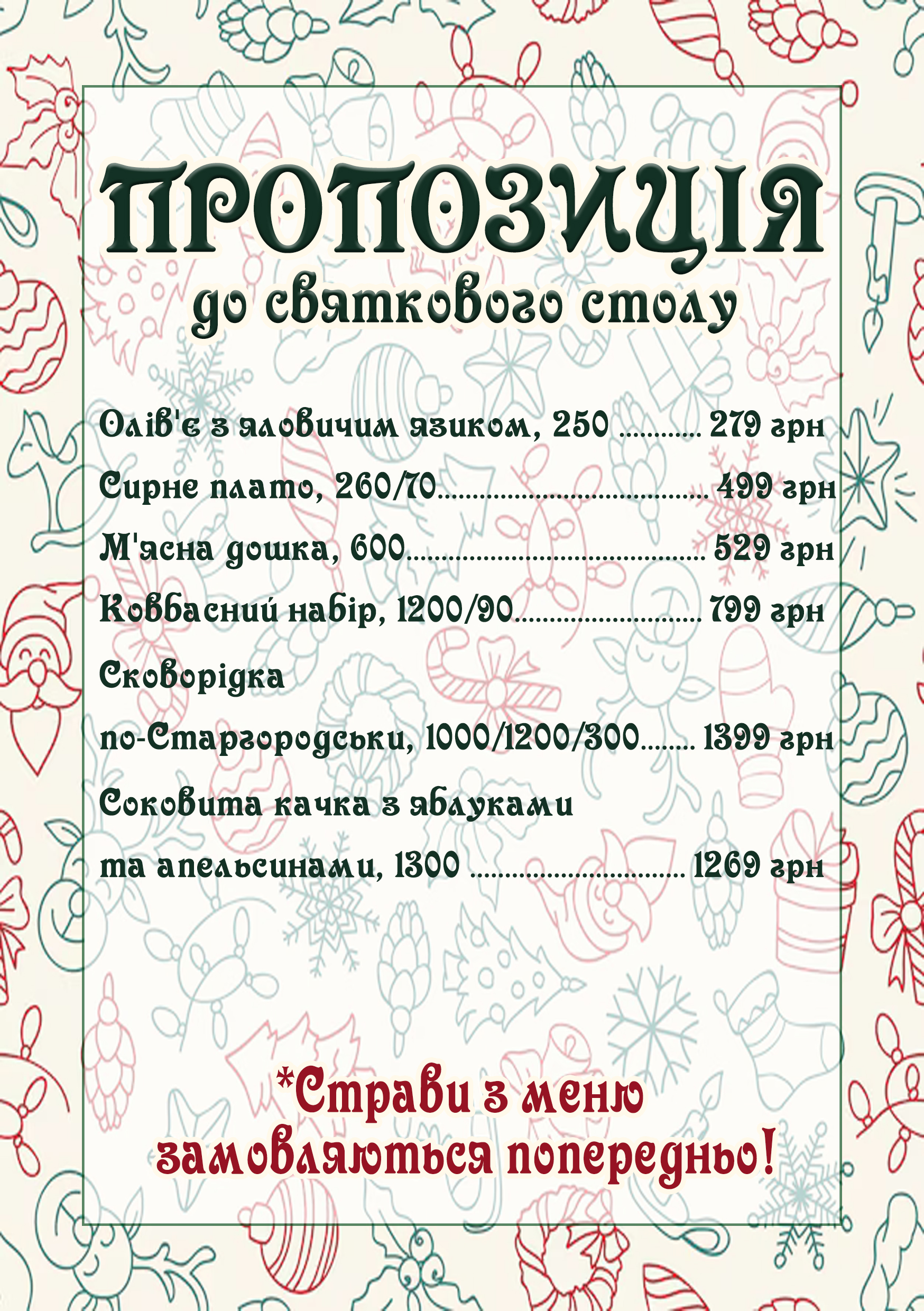 seasonal menu